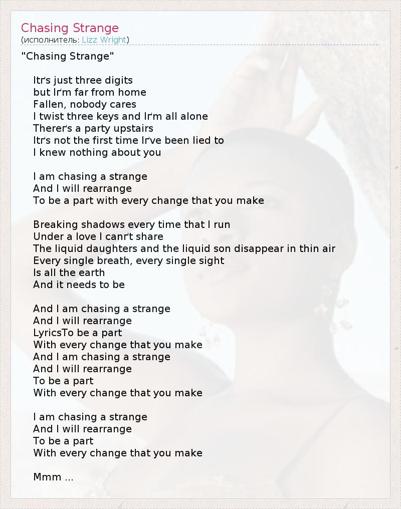 А как ты думаешь, о чем песня "Chasing Strange" ?