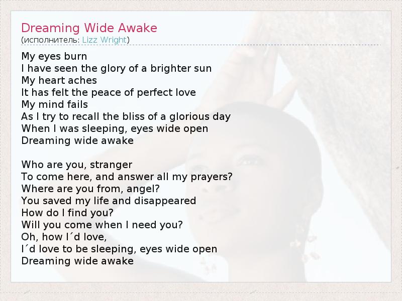 А как ты думаешь, о чем песня "Dreaming Wide Awake" ?