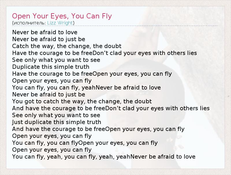 А как ты думаешь, о чем песня "Open Your Eyes, You Can Fly" ?