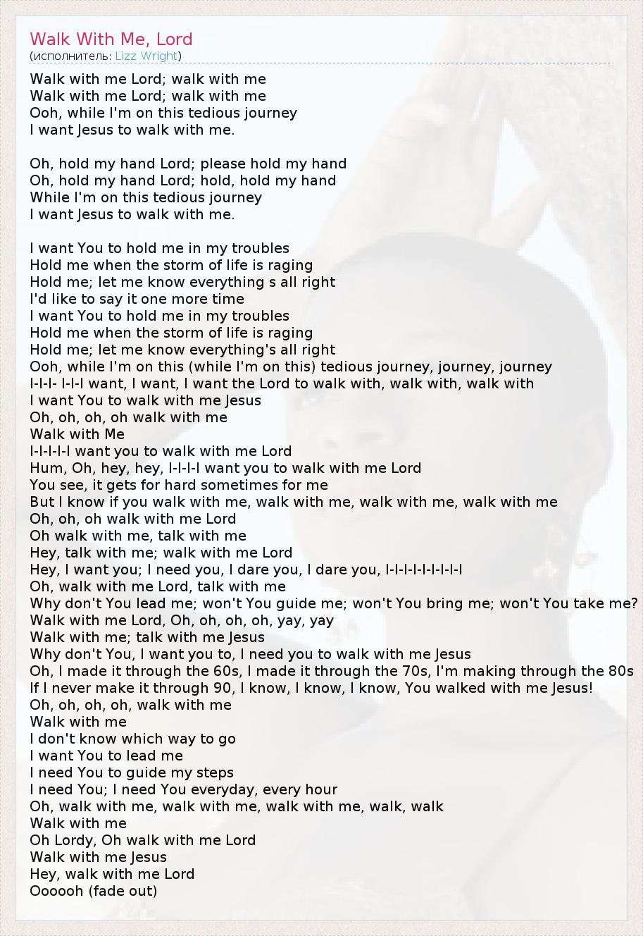 А как ты думаешь, о чем песня "Walk With Me, Lord" ?