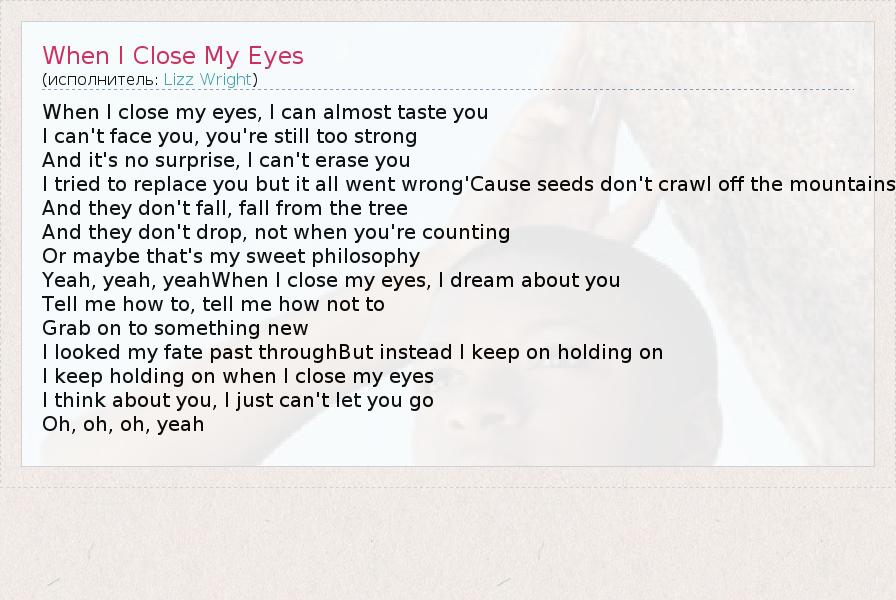 А как ты думаешь, о чем песня "When I Close My Eyes" ?