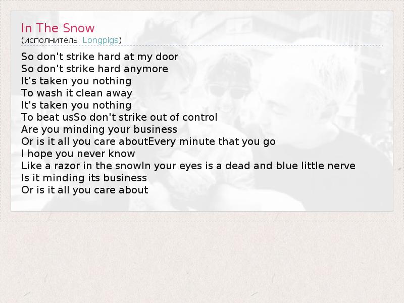 А как ты думаешь, о чем песня "In The Snow" ?