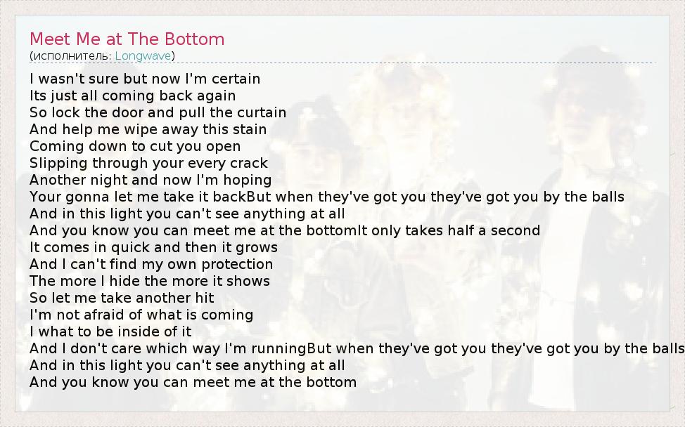А как ты думаешь, о чем песня "Meet Me at The Bottom" ?