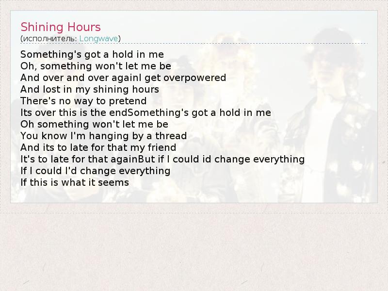 А как ты думаешь, о чем песня "Shining Hours" ?