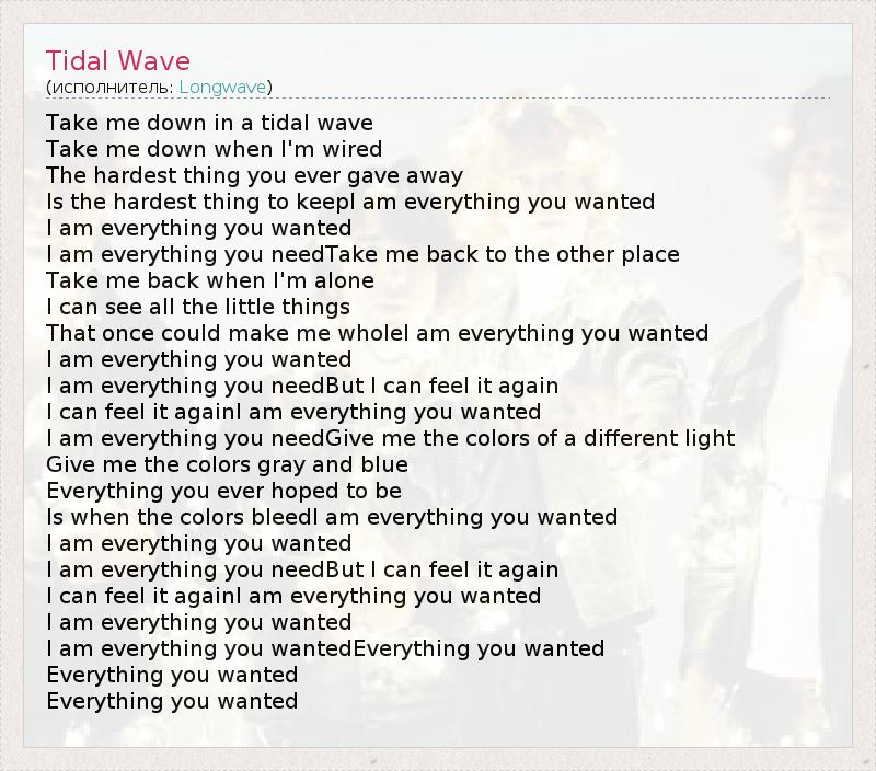 А как ты думаешь, о чем песня "Tidal Wave" ?