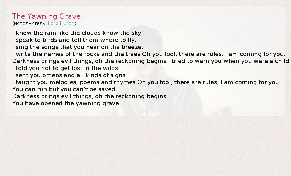 А как ты думаешь, о чем песня "The Yawning Grave" ?