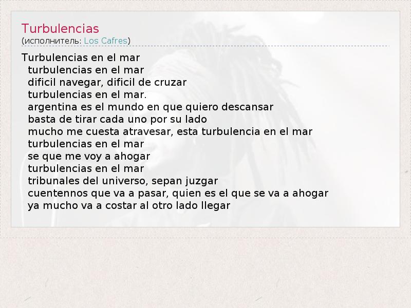 А как ты думаешь, о чем песня "Turbulencias" ?