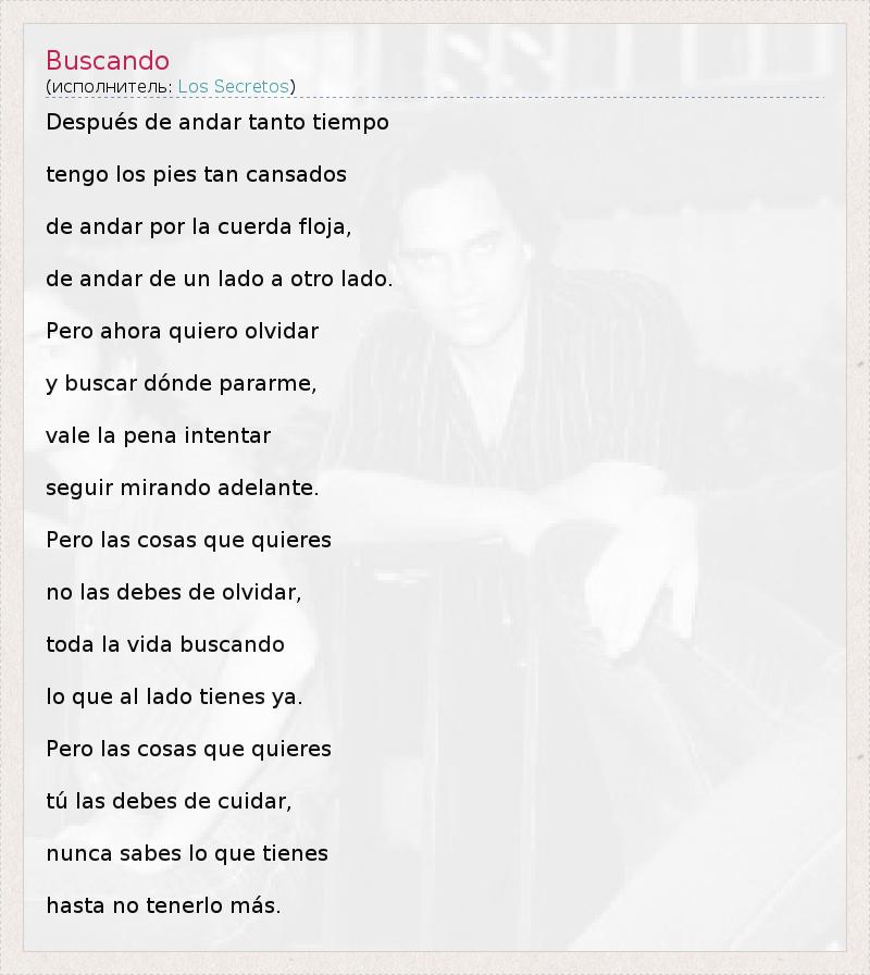 Después de andar tanto tiempo tengo los pies tan cansados de andar por la cuerda floja, de andar de un lado a otro lado. Pero ahora quiero olvidar y buscar dónde pararme, vale la pena intentar seguir mirando adelante. Pero las cosas que quieres no las debes de olvidar, toda la vida buscando lo que al lado tienes ya. Pero las cosas que quieres tú las debes de cuidar, nunca sabes lo que tienes hasta no tenerlo más.
