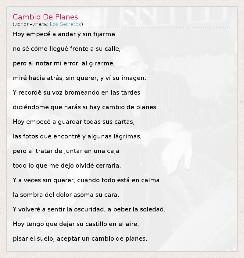 А как ты думаешь, о чем песня "Cambio De Planes" ?