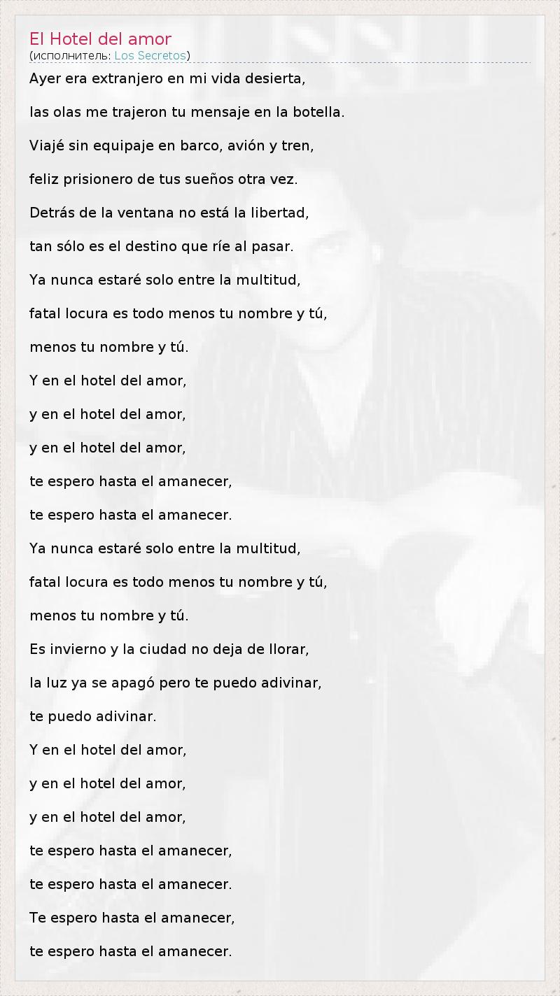 А как ты думаешь, о чем песня "El Hotel del amor" ?