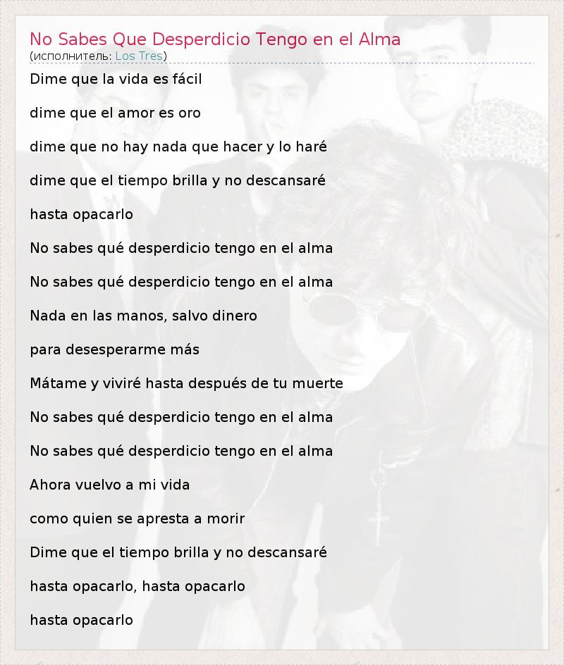 А как ты думаешь, о чем песня "No Sabes Que Desperdicio Tengo en el Alma" ?