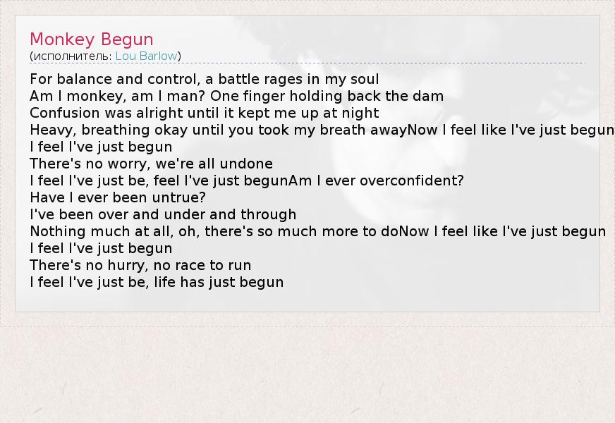 А как ты думаешь, о чем песня "Monkey Begun" ?