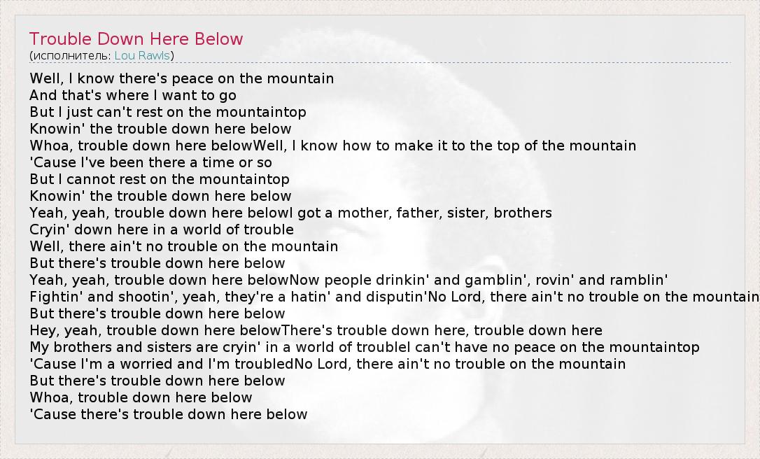 ГлавнаяИсполнителиLou RawlsTrouble Down Here Below