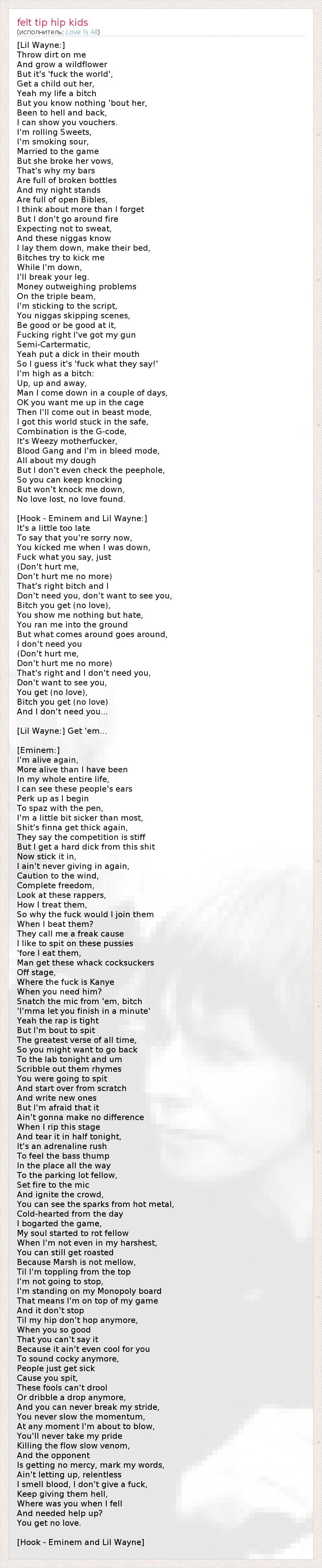 А как ты думаешь, о чем песня "felt tip hip kids" ?