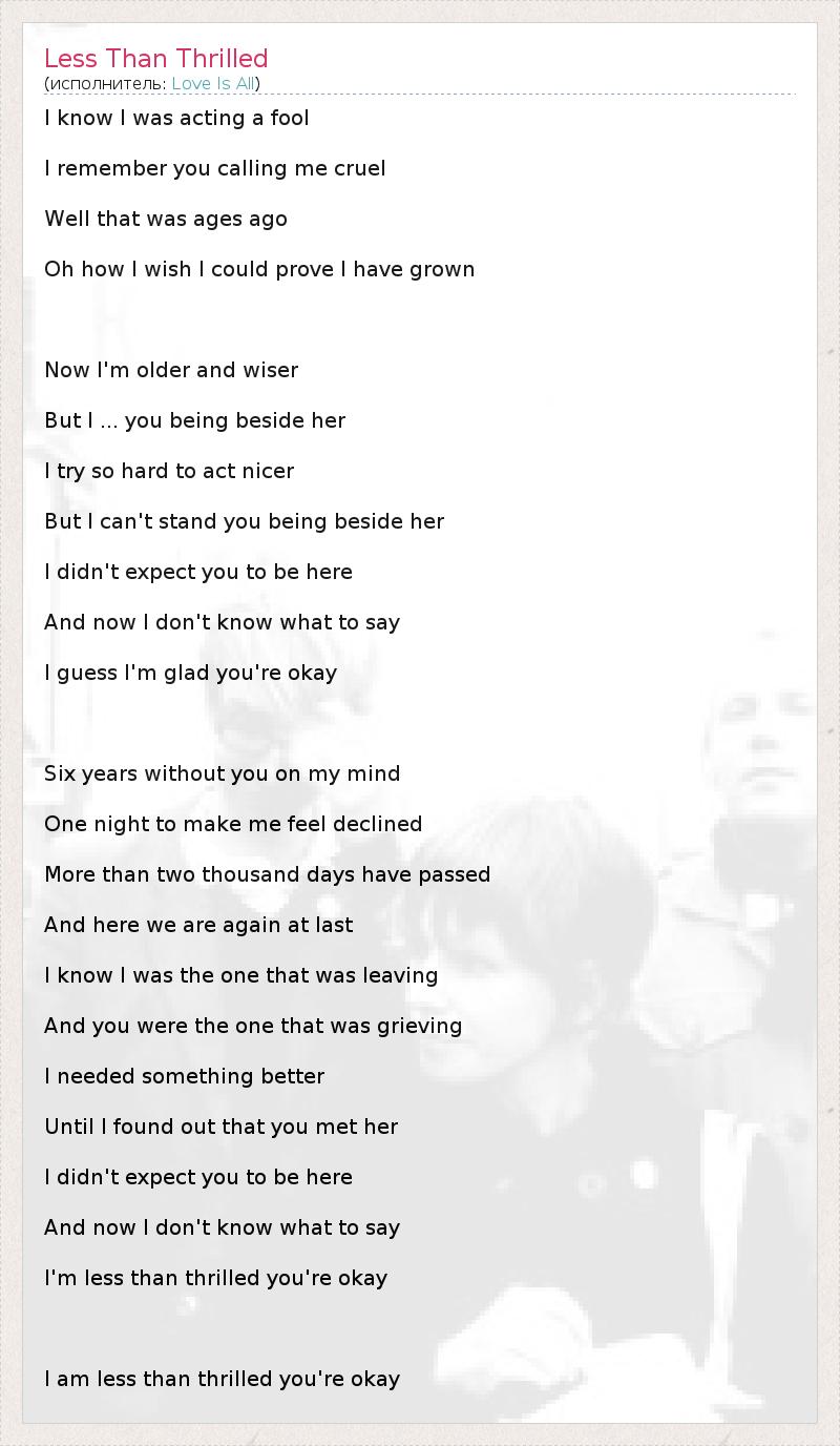 А как ты думаешь, о чем песня "Less Than Thrilled" ?