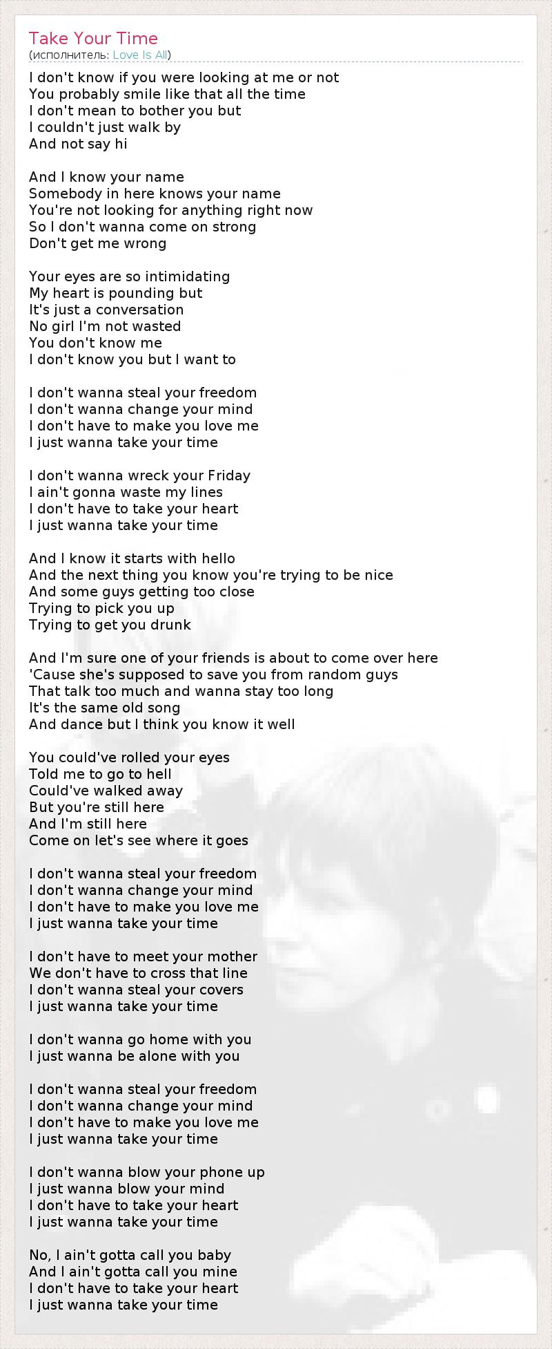 А как ты думаешь, о чем песня "Take Your Time" ?