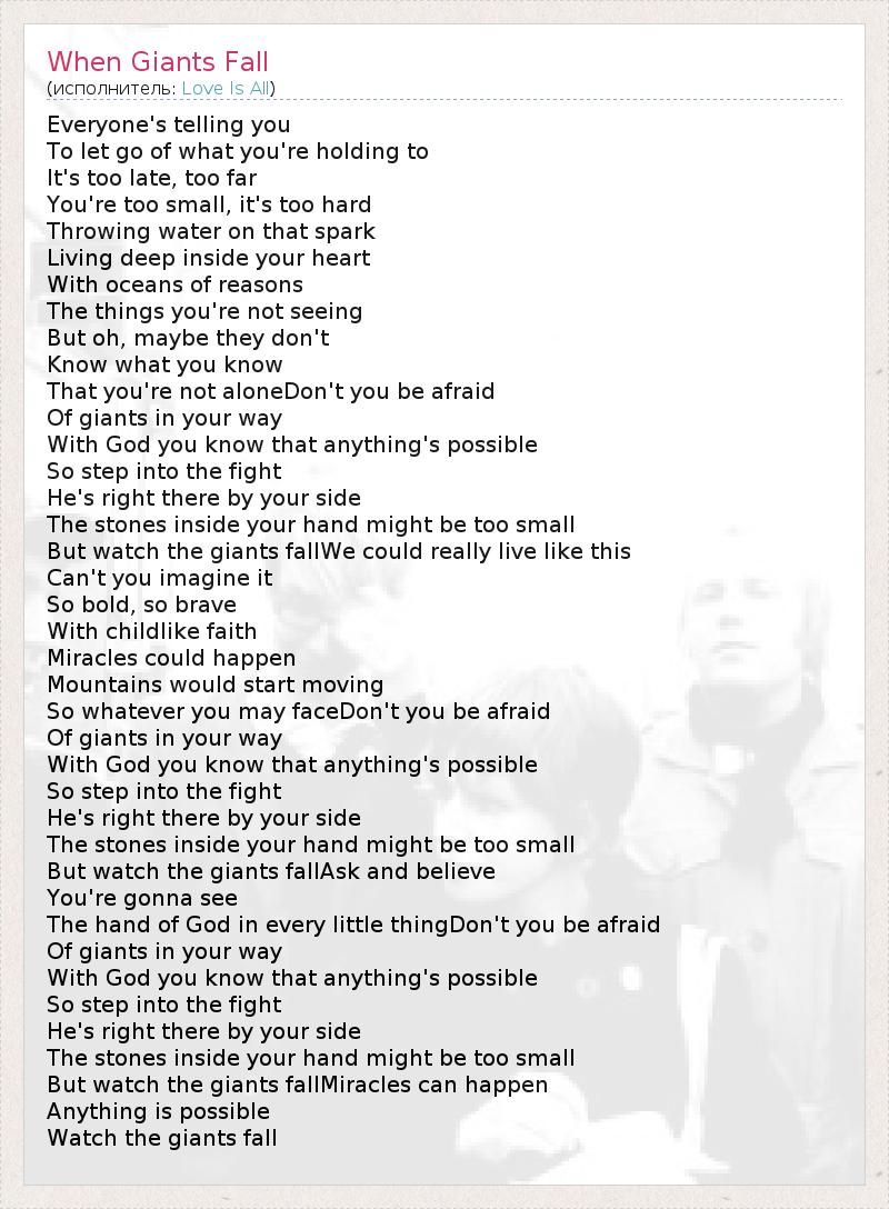 А как ты думаешь, о чем песня "When Giants Fall" ?