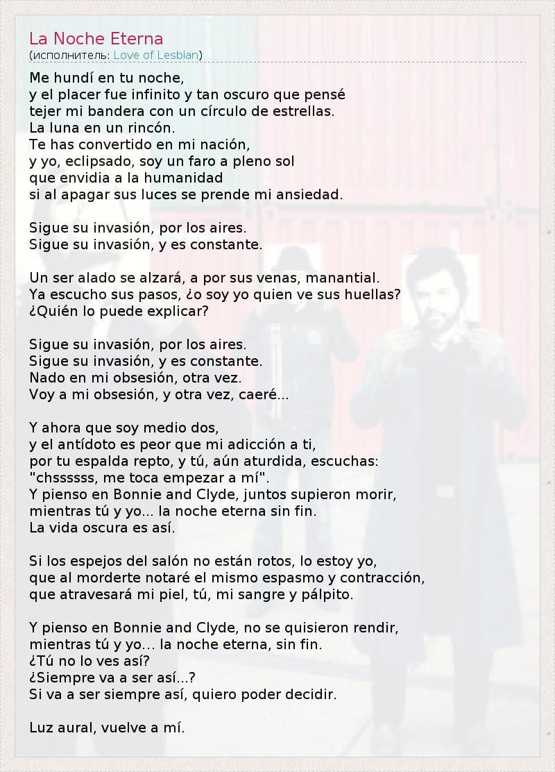 А как ты думаешь, о чем песня "La Noche Eterna" ?