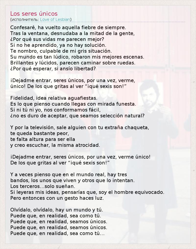 А как ты думаешь, о чем песня "Los seres únicos" ?