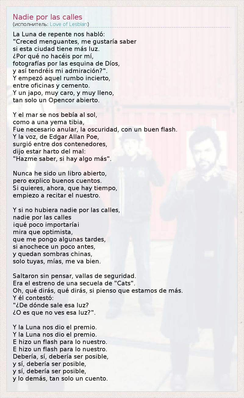 А как ты думаешь, о чем песня "Nadie por las calles" ?