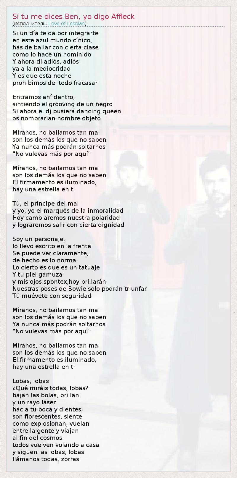 А как ты думаешь, о чем песня "Si tu me dices Ben, yo digo Affleck" ?