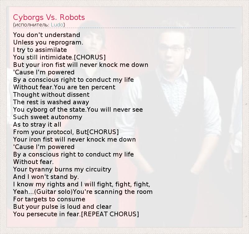А как ты думаешь, о чем песня "Cyborgs Vs. Robots" ?