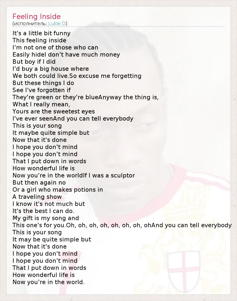 А как ты думаешь, о чем песня "Feeling Inside" ?