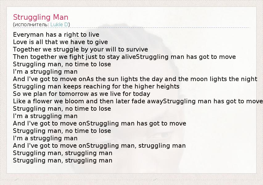 А как ты думаешь, о чем песня "Struggling Man" ?