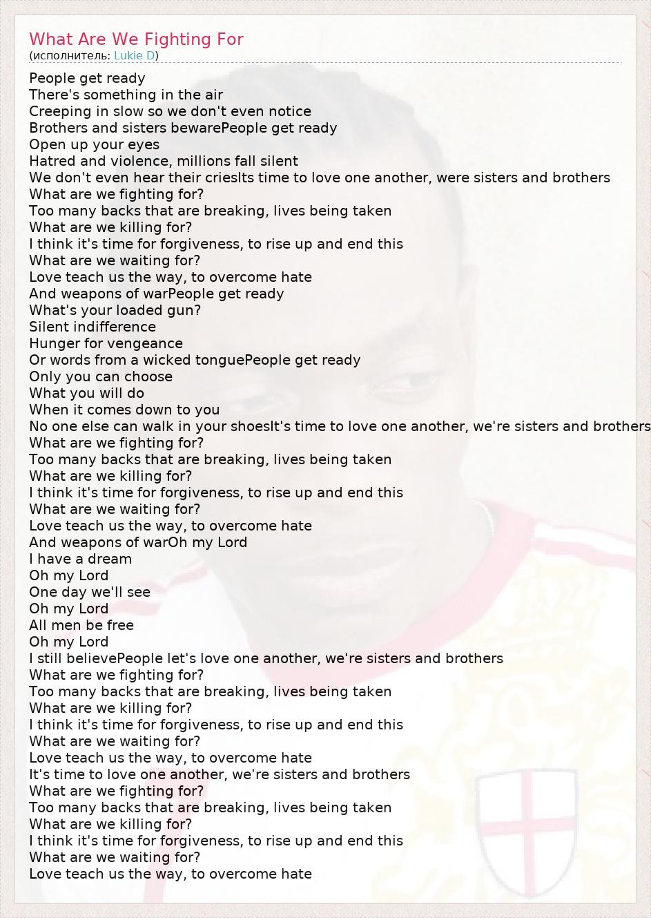 А как ты думаешь, о чем песня "What Are We Fighting For" ?