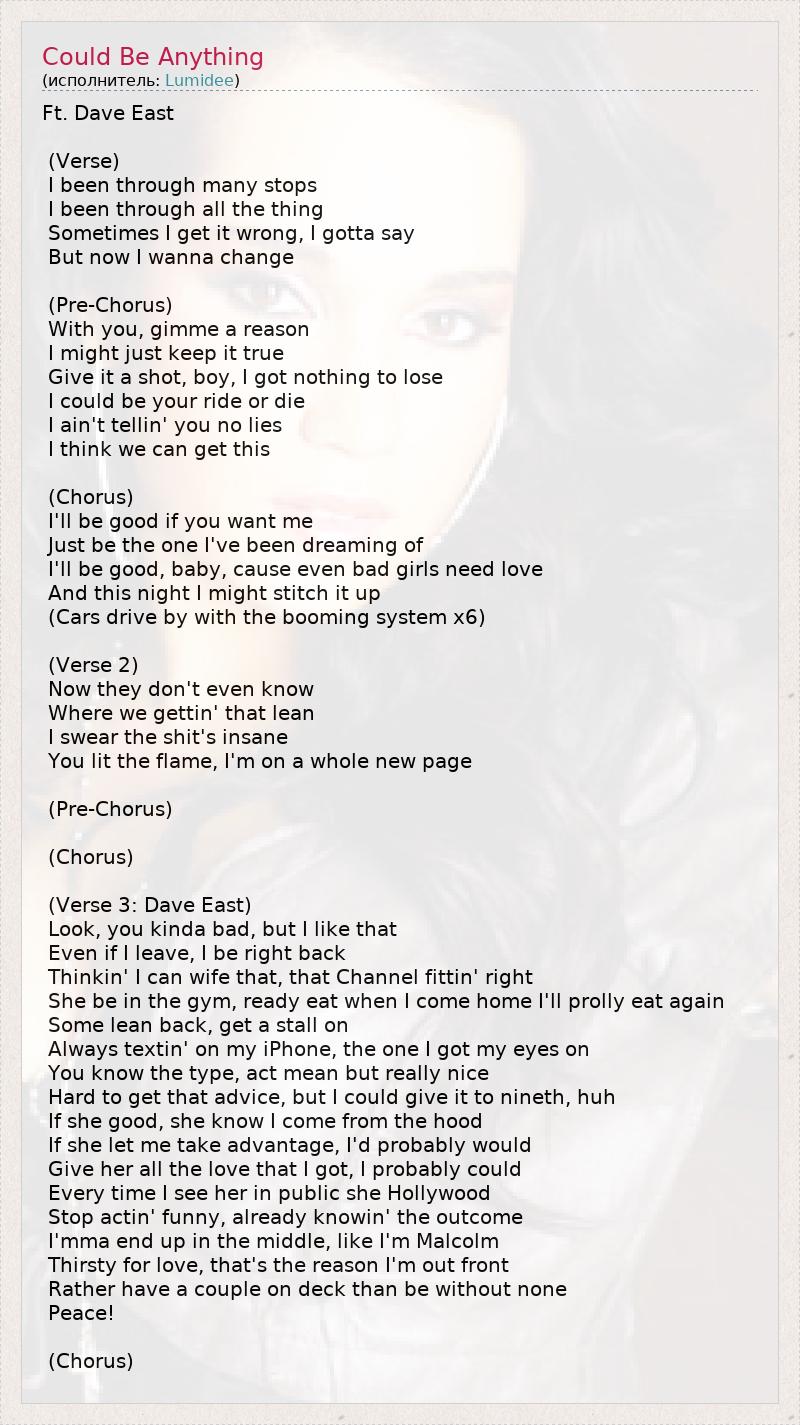 А как ты думаешь, о чем песня "Could Be Anything" ?