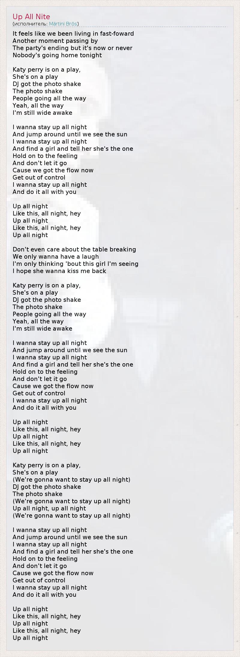 А как ты думаешь, о чем песня "Up All Nite" ?
