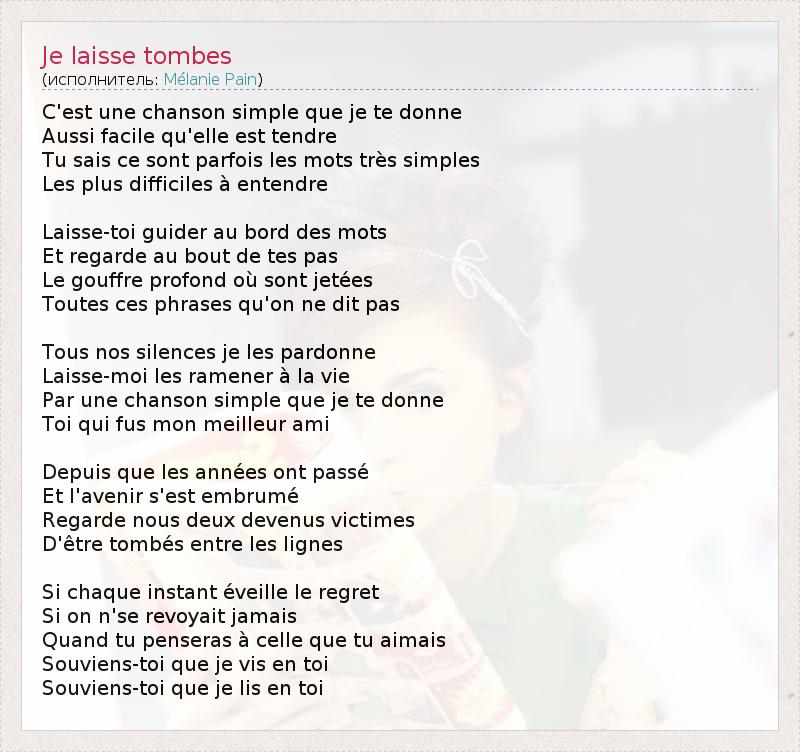 А как ты думаешь, о чем песня "Je laisse tombes" ?