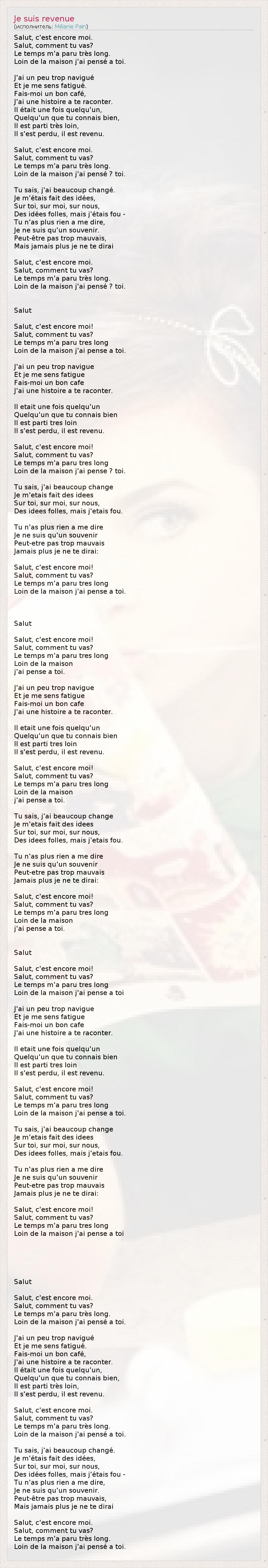 А как ты думаешь, о чем песня "Je suis revenue" ?