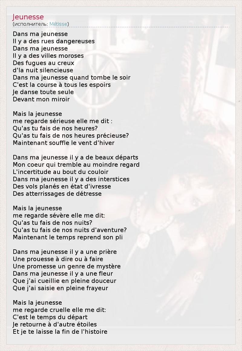 А как ты думаешь, о чем песня "Jeunesse" ?