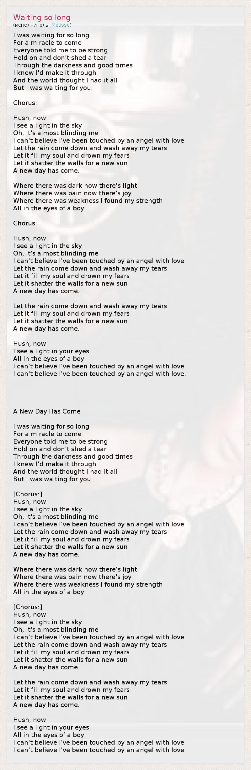 А как ты думаешь, о чем песня "Waiting so long" ?