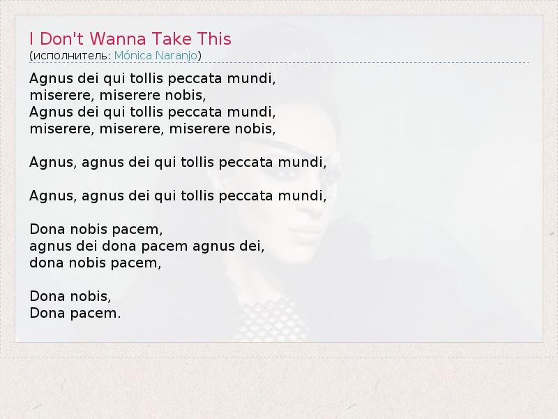 А как ты думаешь, о чем песня "I Don't Wanna Take This" ?