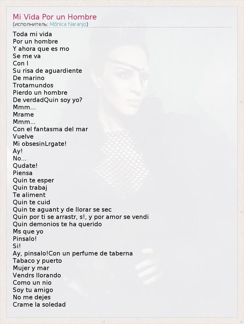 А как ты думаешь, о чем песня "Mi Vida Por un Hombre" ?