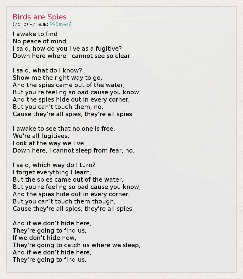 А как ты думаешь, о чем песня "Birds are Spies" ?
