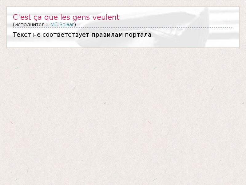 ГлавнаяИсполнителиMC SolaarC'est ça que les gens veulent