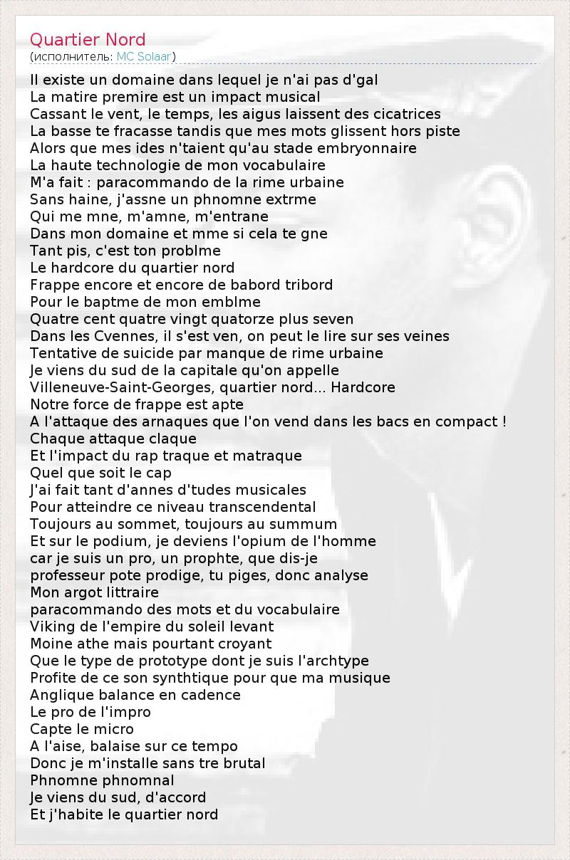 А как ты думаешь, о чем песня "Quartier Nord" ?