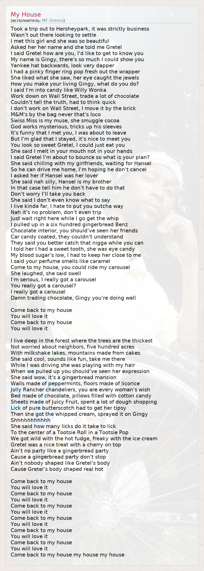 Это интересно:Percy Carey, также известный как MF Grimm, GM Grimm, The Grimm Reaper, Superstar Jet Jaguar и Build and Destroy — андерграунд рэп-исполнитель из Нью-Йорка, художник комиксов.В детстве Перси жил в Гарлеме, районе в северной части нью-йоркского округа Манхэттен. Его соседом был актёр Морган Фриман, который помог парню попасть на передачу Улица Сезам, в которой он был ребенком-актером. Будучи студентом средней школы, Кэрри... продолжение