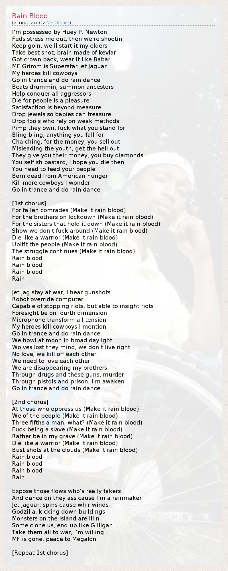 А как ты думаешь, о чем песня "Rain Blood" ?