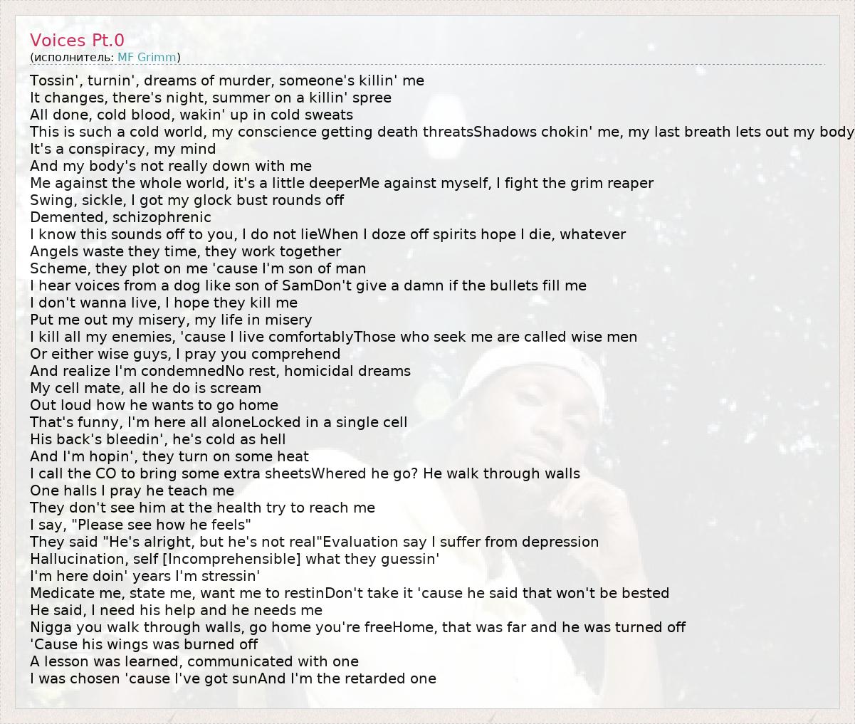 А как ты думаешь, о чем песня "Voices Pt.0" ?