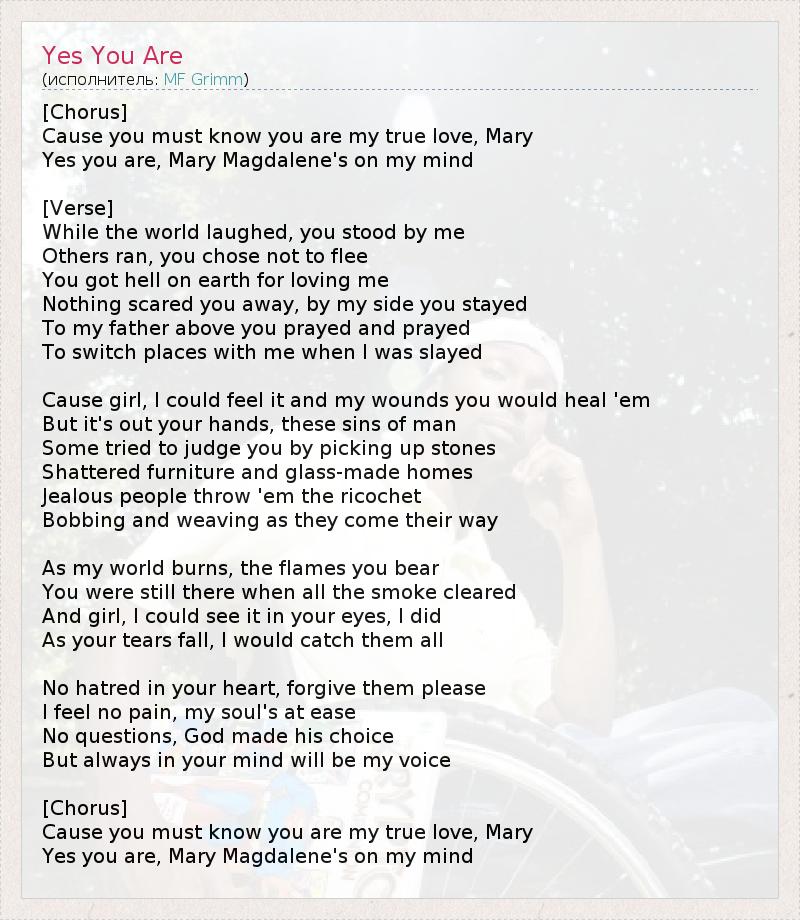 А как ты думаешь, о чем песня "Yes You Are" ?