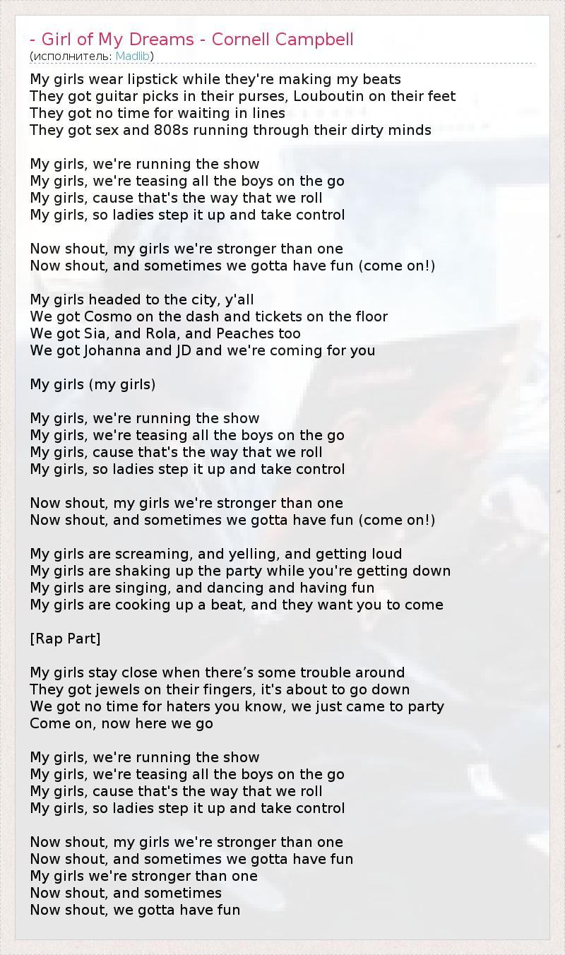 А как ты думаешь, о чем песня "- Girl of My Dreams - Cornell Campbell" ?