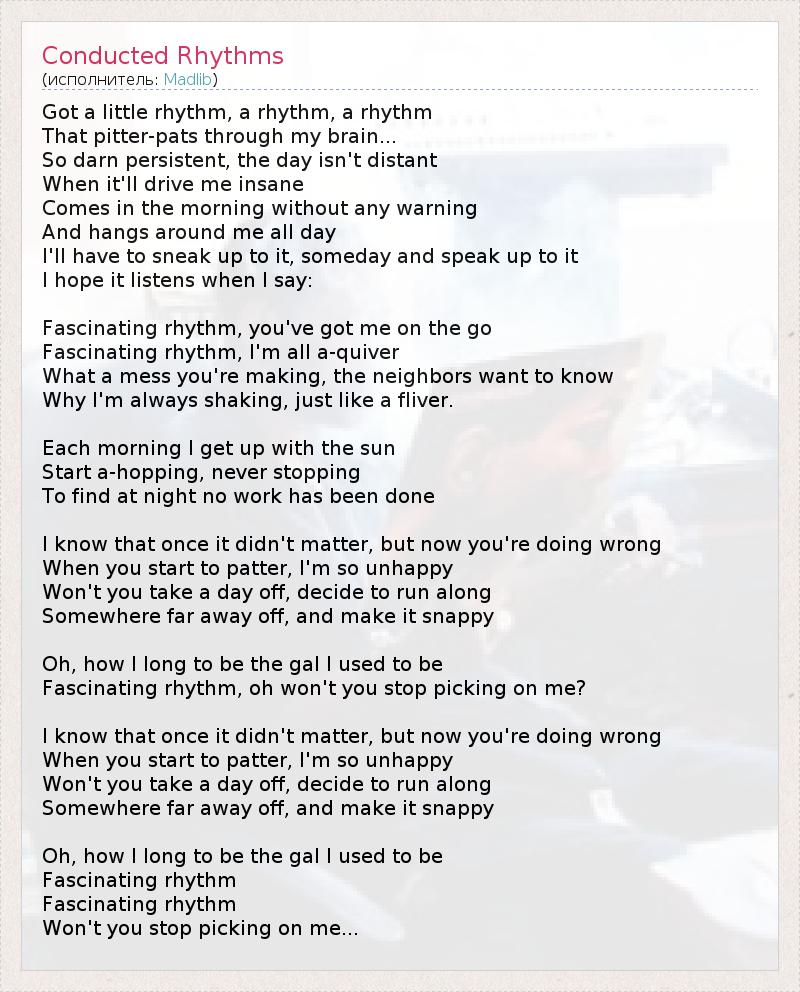 Чарующий ритм, о, когда же ты отстанешь от меня?