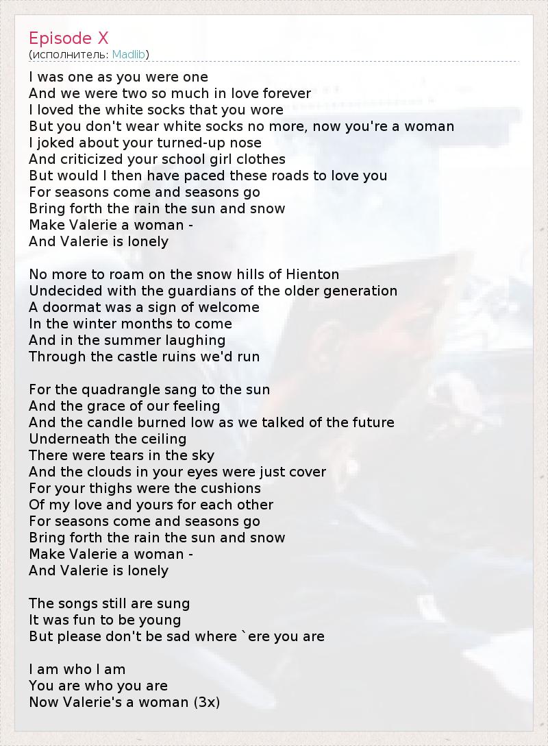 Now Valerie's a woman (3x)