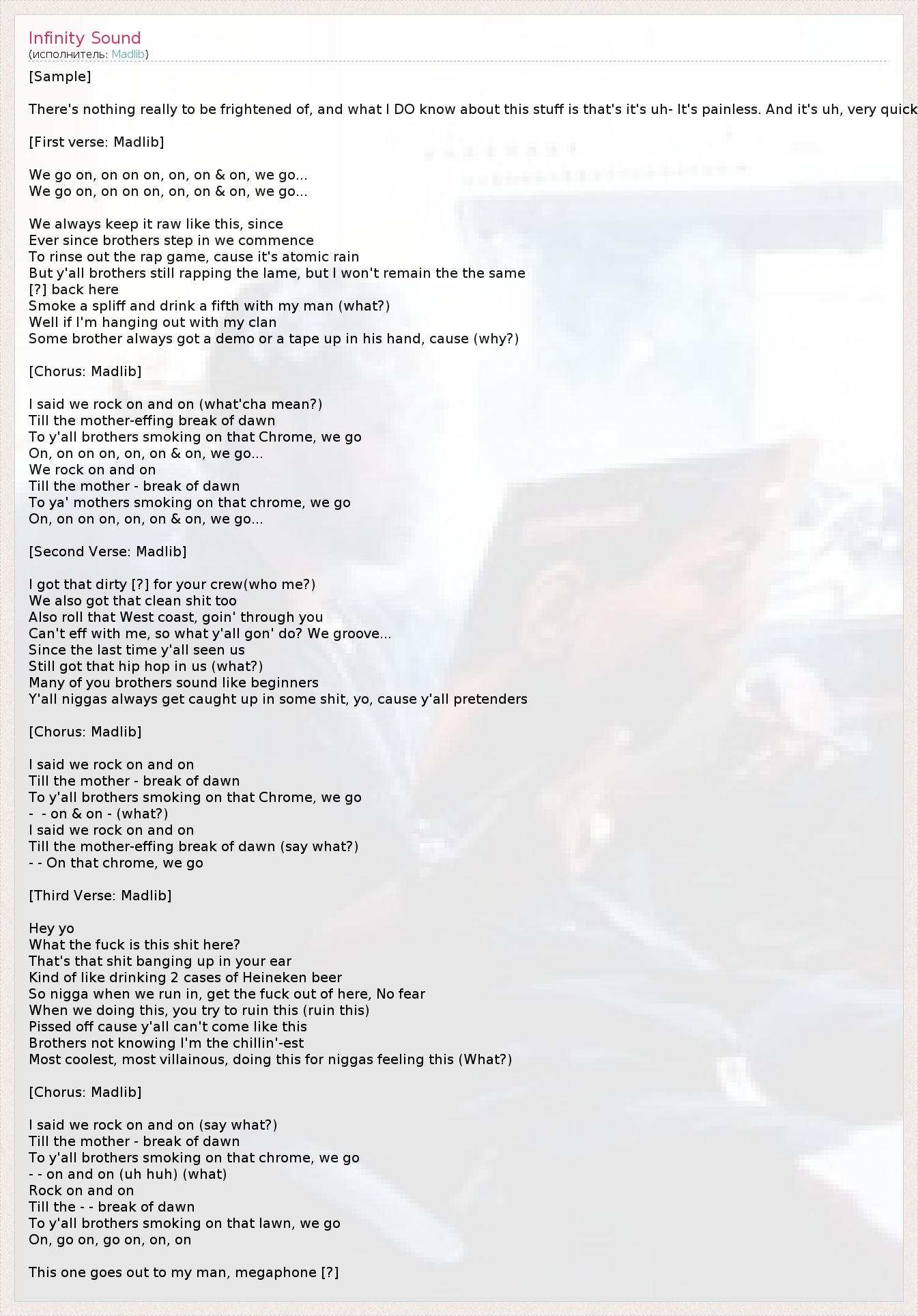А как ты думаешь, о чем песня "Infinity Sound" ?
