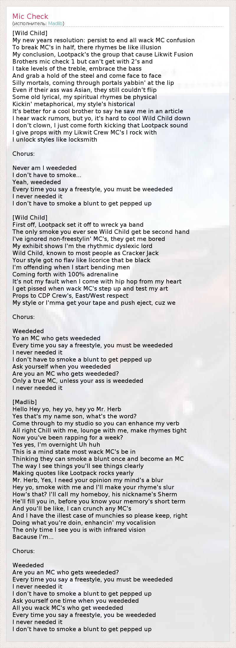 А как ты думаешь, о чем песня "Mic Check" ?