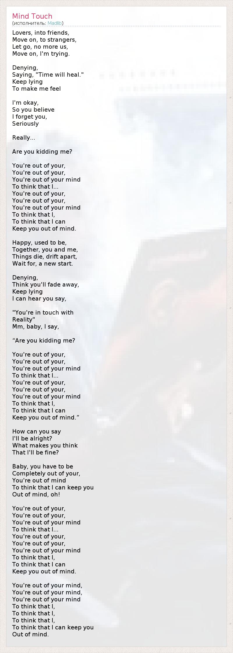 А как ты думаешь, о чем песня "Mind Touch" ?